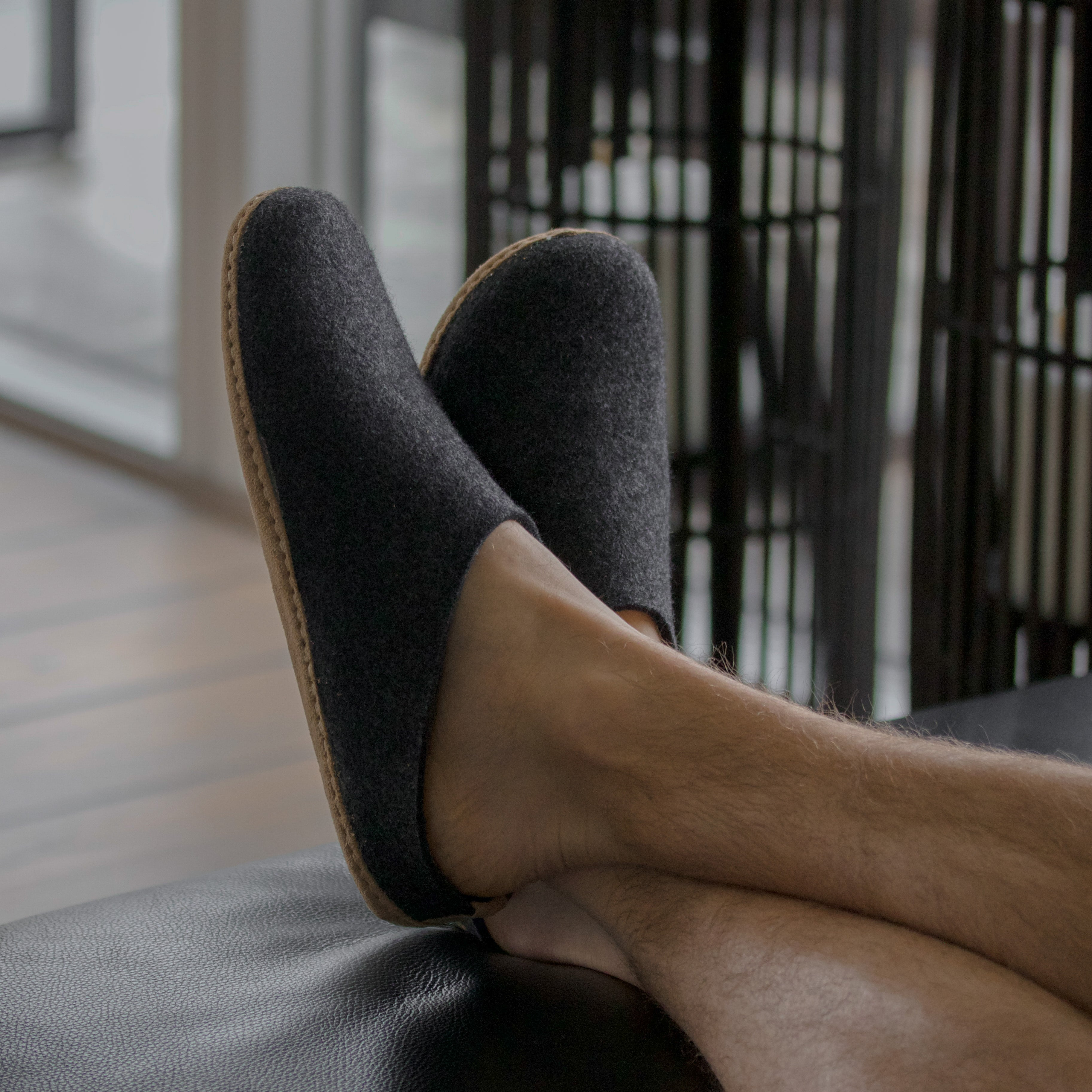 Vores mørke tøfler er specielt et hit hos mænd, og du vil ikke gå galt i byen med at købe sådan et par til din kære. Dog er hjemmeskoene også perfekt til at skabe en hyggelig stemning i hjemmet, og findes også i naturlige farver der vil passe til enhver mand.