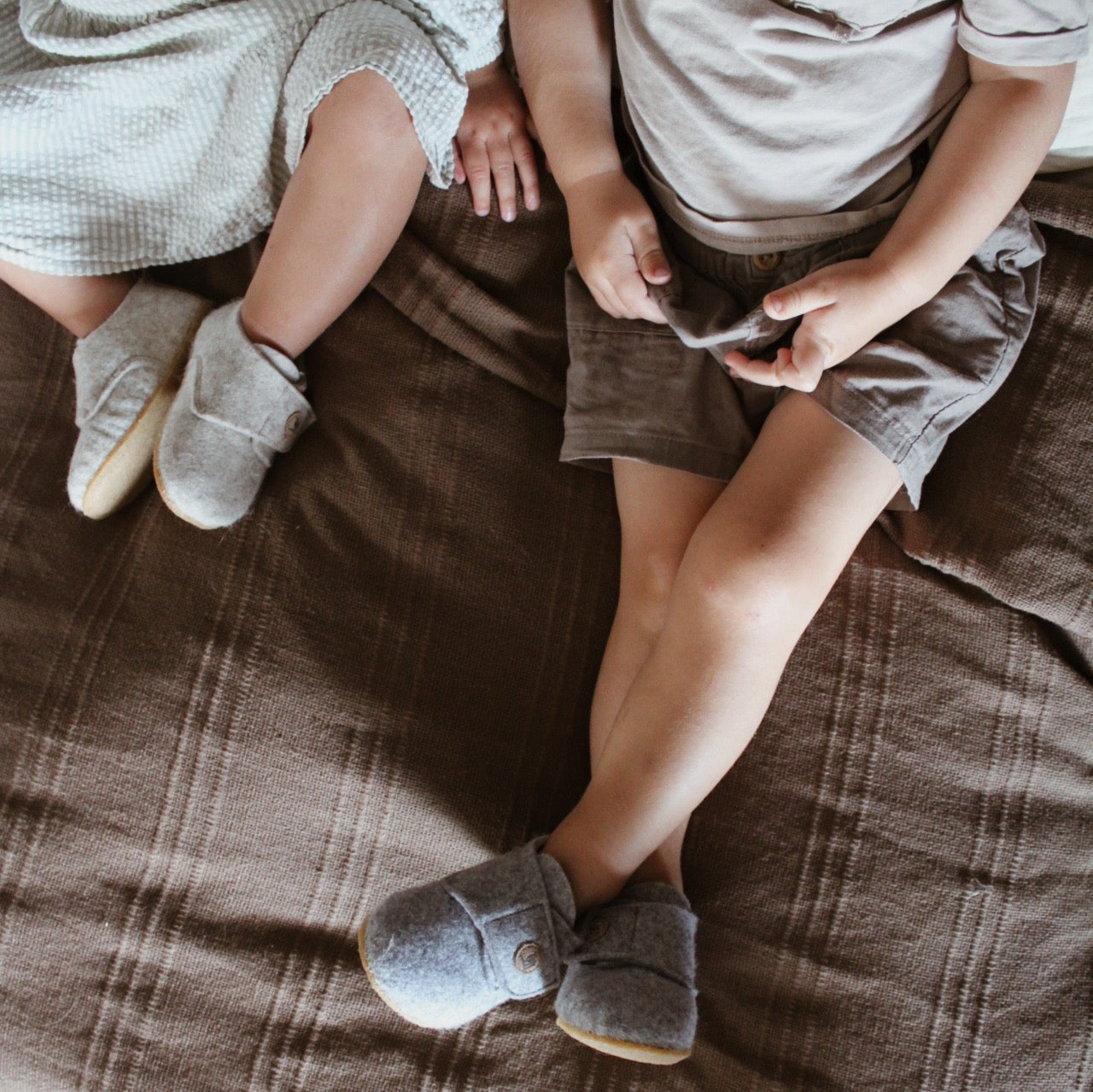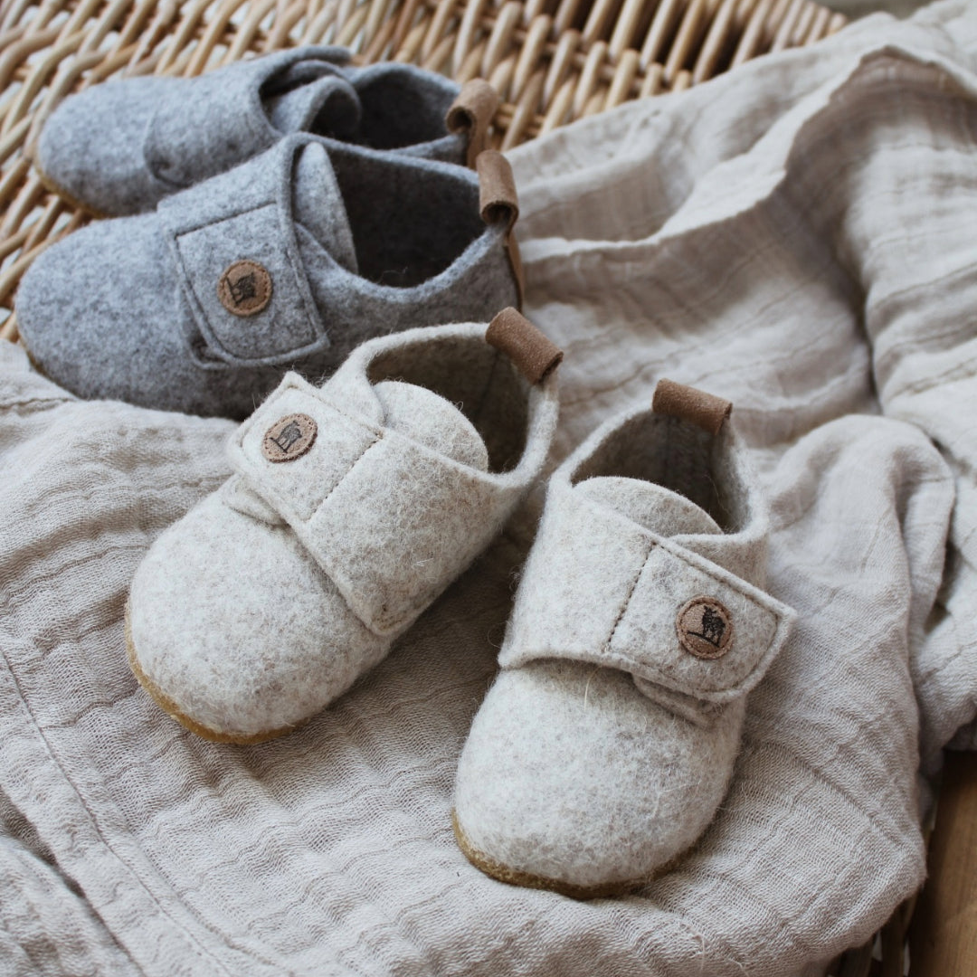 Oeko-Tex certificeret uldfilt med velcro og skridsikker gummisål