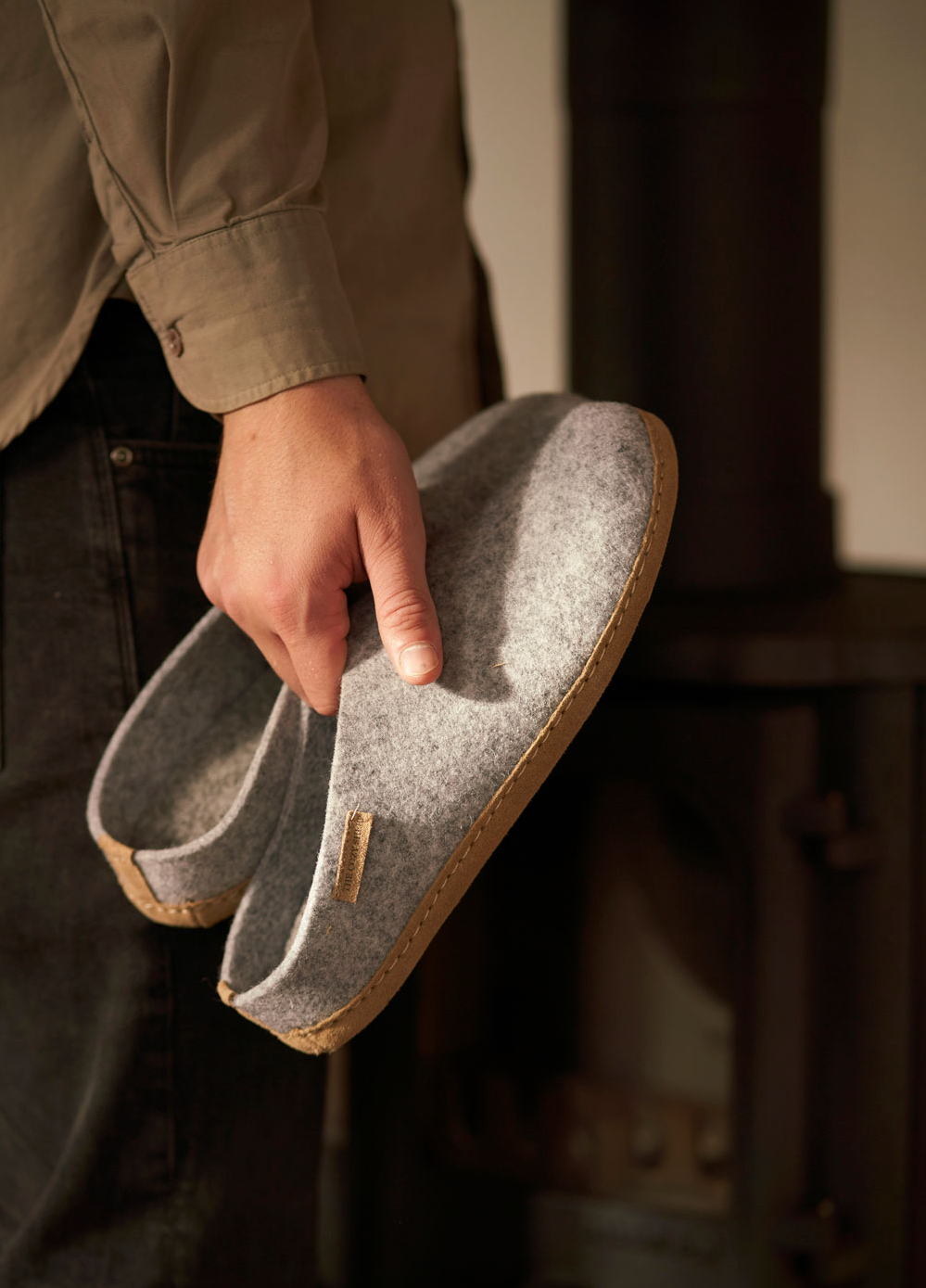 Med et enkelt og tidsløst, skandinavisk design passer vores lækre filttøfler perfekt ind i alle hjem, uanset stil. Denne model har en meget let og elegant ruskindssål, lavet af økologisk kvalitetslæder. Tøflerne er enormt behagelige at have på og så er de tilmed temperaturregulerende, hvilket betyder, at de kan bruges hele året rundt - ikke kun når det er koldt udenfor.