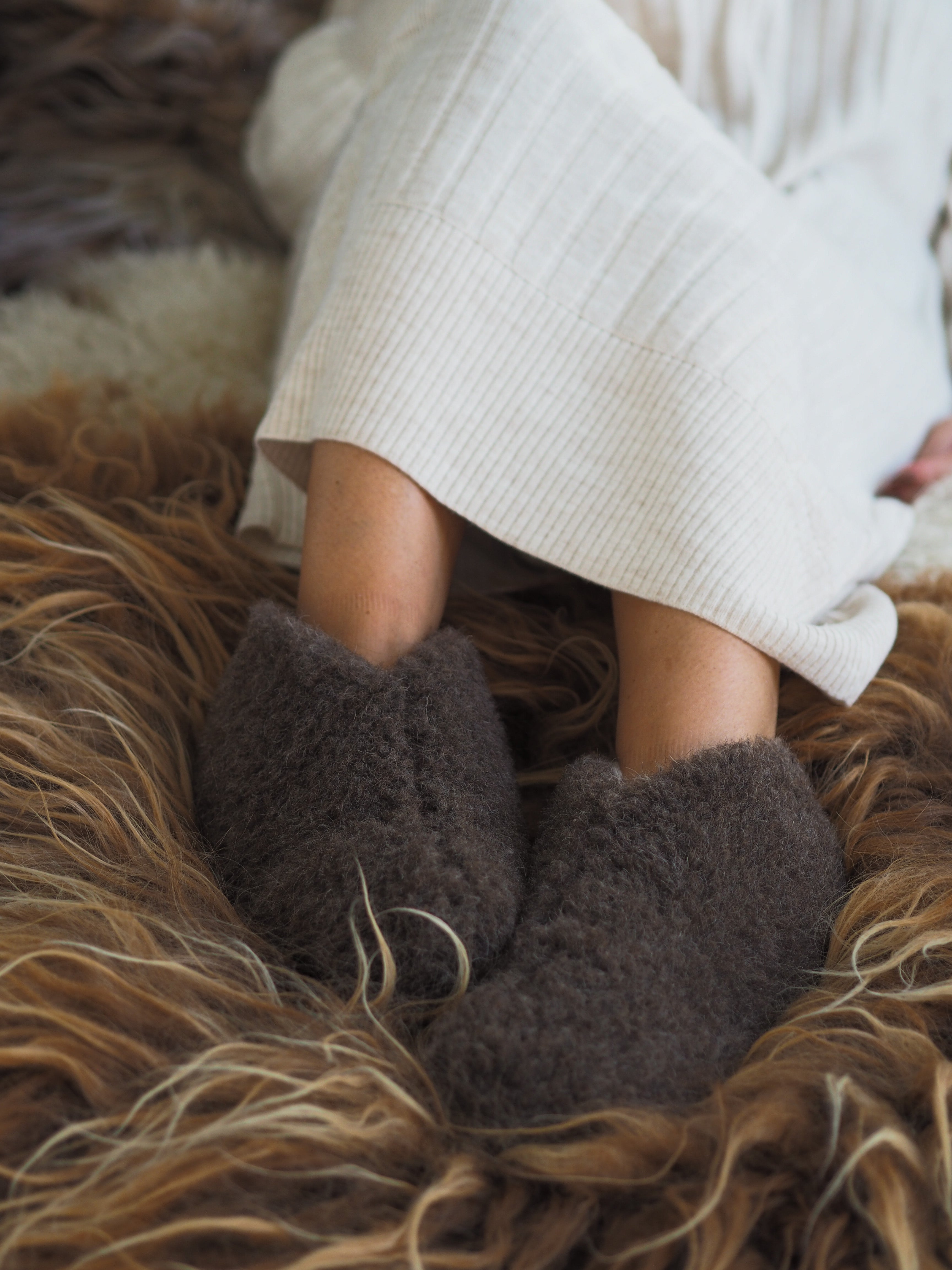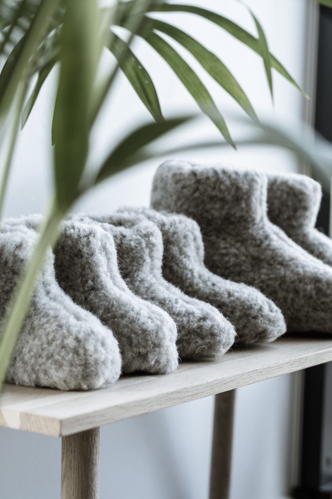 Hjemmesko i 100% blød og kradsefri økologisk merinould